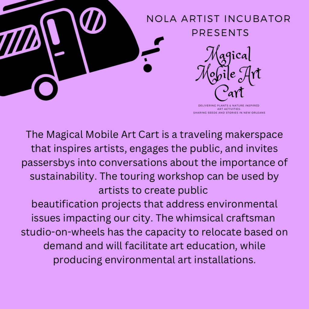 We are pleased to announce that the NOLA Artist Incubator is the recipient of a 2022 Arts & Culture Grant to fabricate the Magical Mobile Art Cart!
