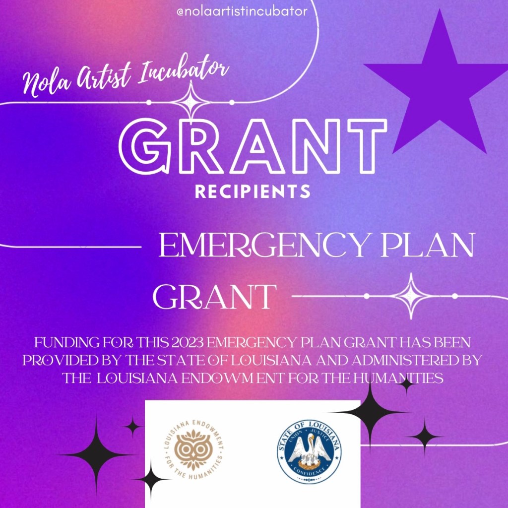 Pleased to share that the NOLA Artist Incubator has been awarded a grant in the amount of $5000 to aid in the development of an Emergency Plan for the organization.