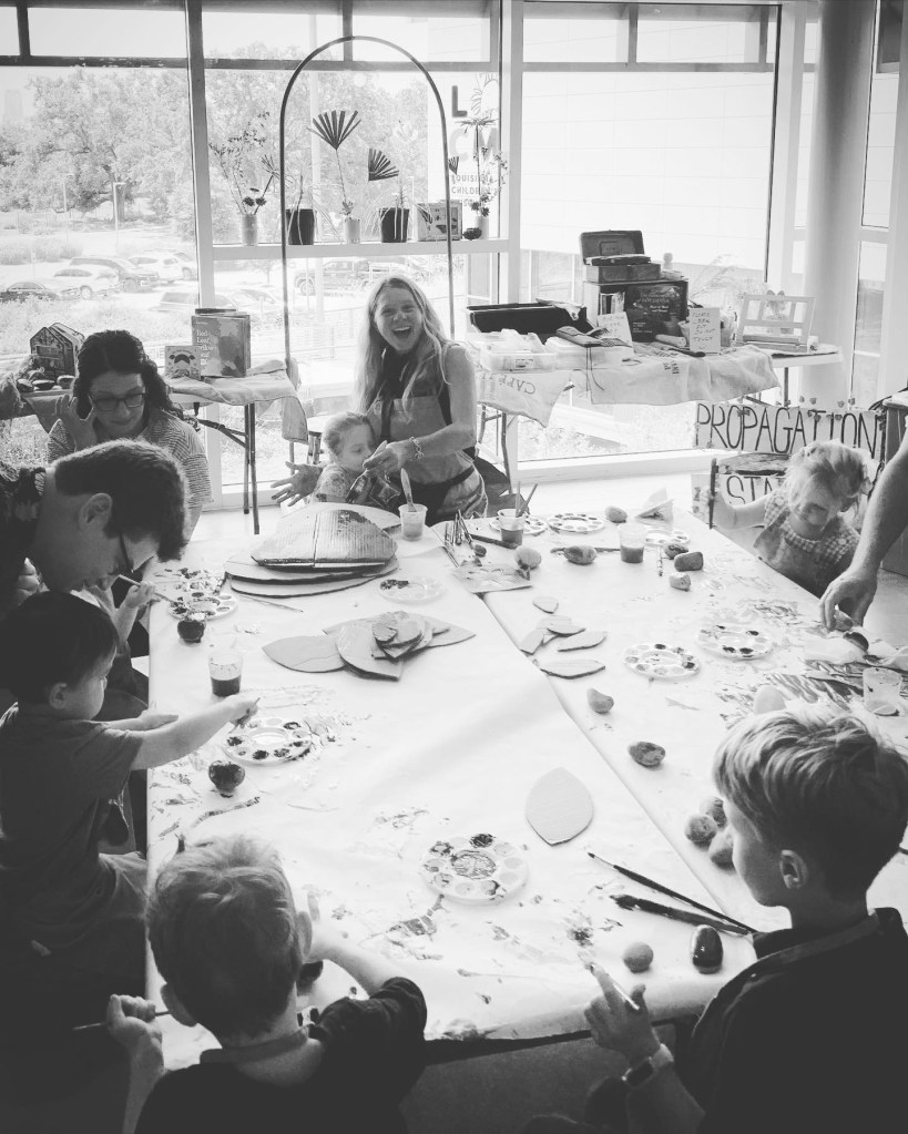 Executive Director, Lissie Stewart, started her Summer Artist-in-Residency at the Louisiana Children’s Museum to today. For the next two months she’ll be working at the Studio in the Park on the second floor of the museum.