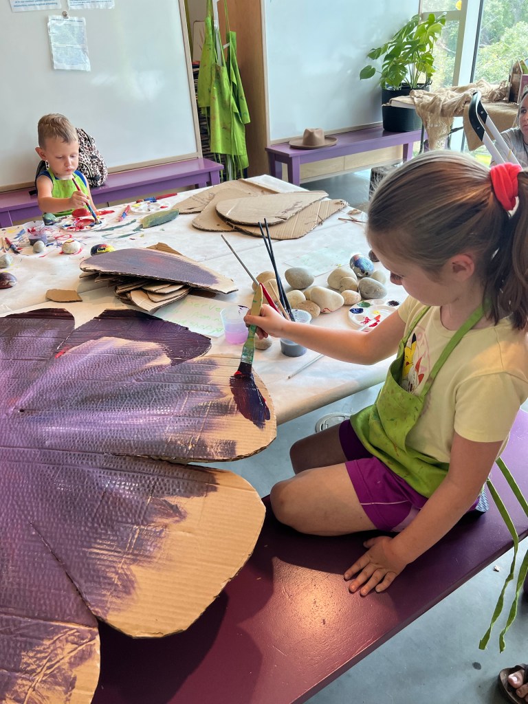 Her artist facilitation hours are scheduled for Wednesdays and Thursdays from 10:00- noon. She’ll spend the duration of Saturday’s curating the work created by children and creating new pieces to be collaboratively developed in subsequent sessions.