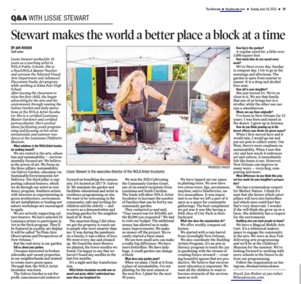 Hot off the press, the NOLA Artist Incubator was recently featured in the Louisiana Inspired section of the Advocate, Times-Picayune, and Acadian. Read the full story from the interview with our Executive Director below!