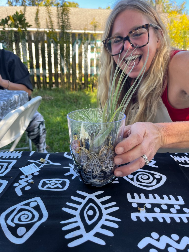 Lilith Dorsey, known for their cultural storytelling and knowledge of plants, took participants on a journey through the history of terrariums. They shared insights about how these miniature ecosystems have captivated people for centuries, serving as a reflection of our relationship with nature. As Halloween approaches, Dorsey added a thrilling twist to this traditional craft: they introduced the concept of “cemetariums.”
