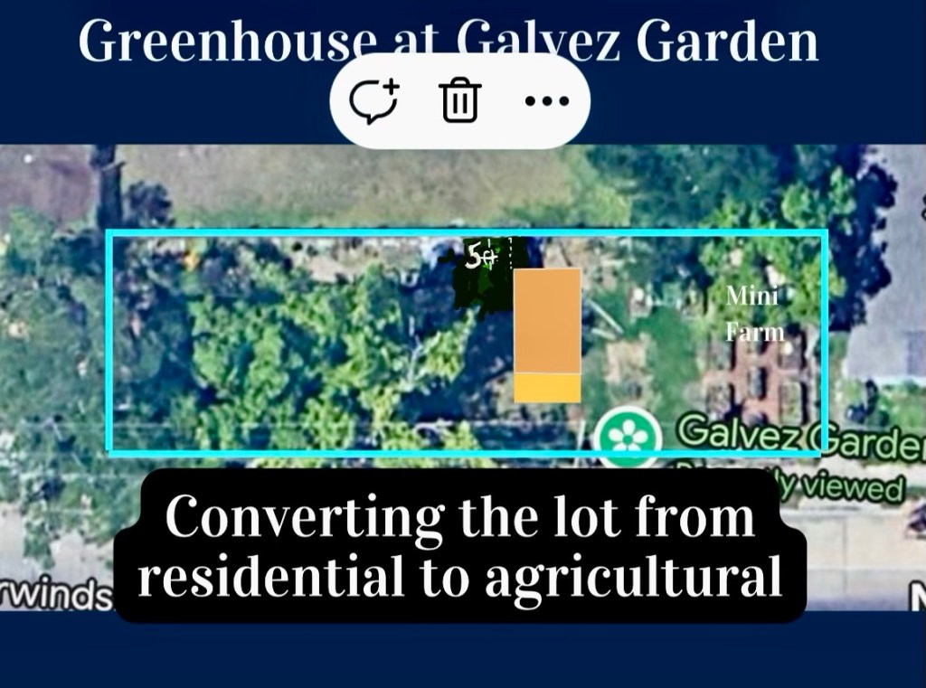 Over the next 30 days Lissie will document all the preparation work that goes into getting a greenhouse for Galvez Garden. Currently the Incubator has received all the required permits from the city to install the greenhouse. The Galvez Garden has changed its land use to officially be agricultural land.