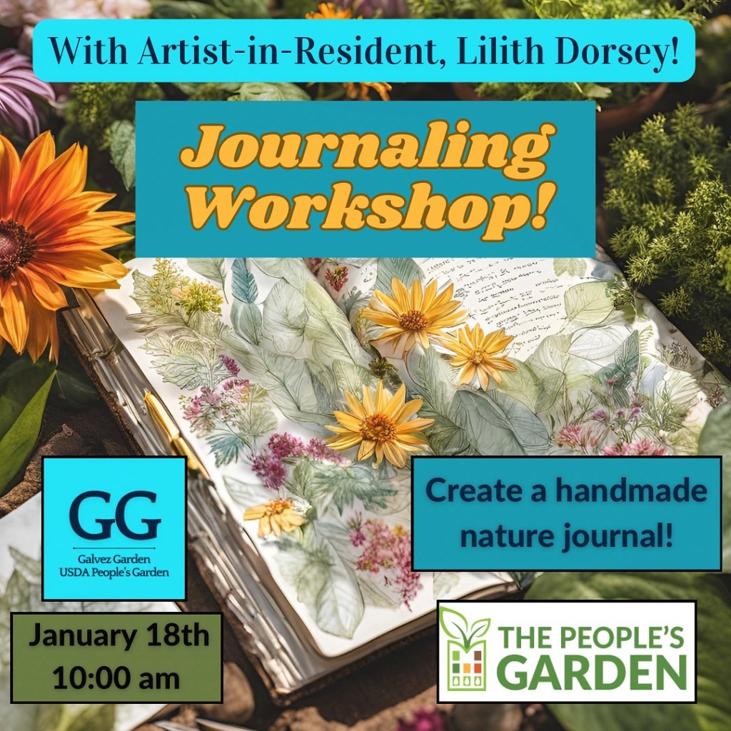 Join us as Lilith guides participants on a journaling journey at Galvez Garden. This class allows participants to unlock their creativity in every way. We will begin by gathering natural materials to create the front and back covers of our handmade journals. While this is happening we will talk about the traditional plants used by both indigenous and enslaved people on this land. After crafting our covers we will hand stitch our journals together. Then we will take some time to explore the garden pondering some of the ecological challenges we face currently or those that our ancestors faced here in New Orleans and create a piece based on that in our journal. This could be a drawing of a native plant or pollinator, it could be a sketch for a possible butterfly garden, it could be a poem about your ancestor’s garden. The possibilities are endless, and at the end we will regroup and share what we have created. Please bring your favorite drawing or writing materials, all other items will be provided.