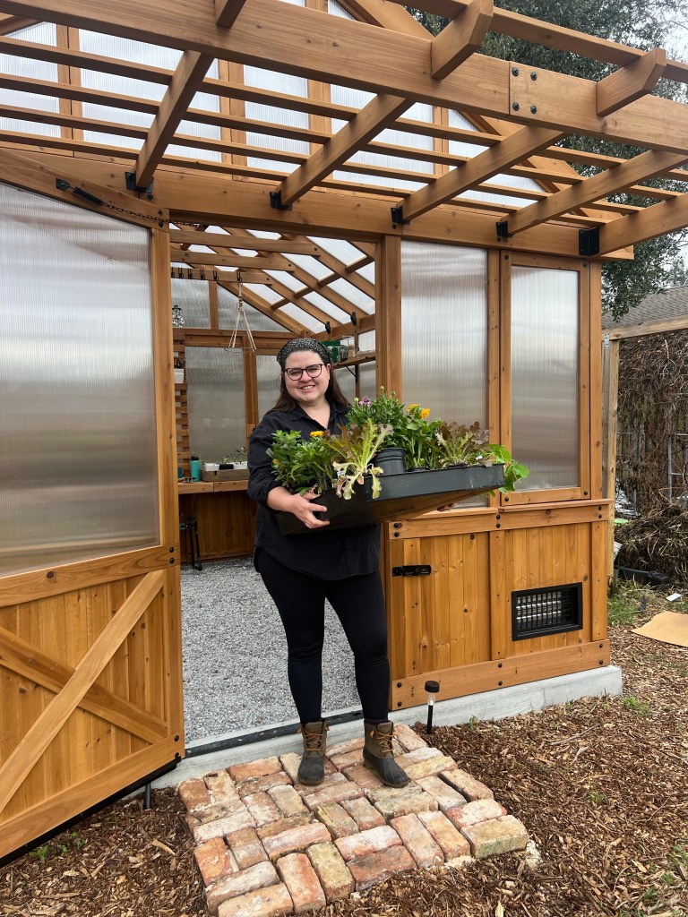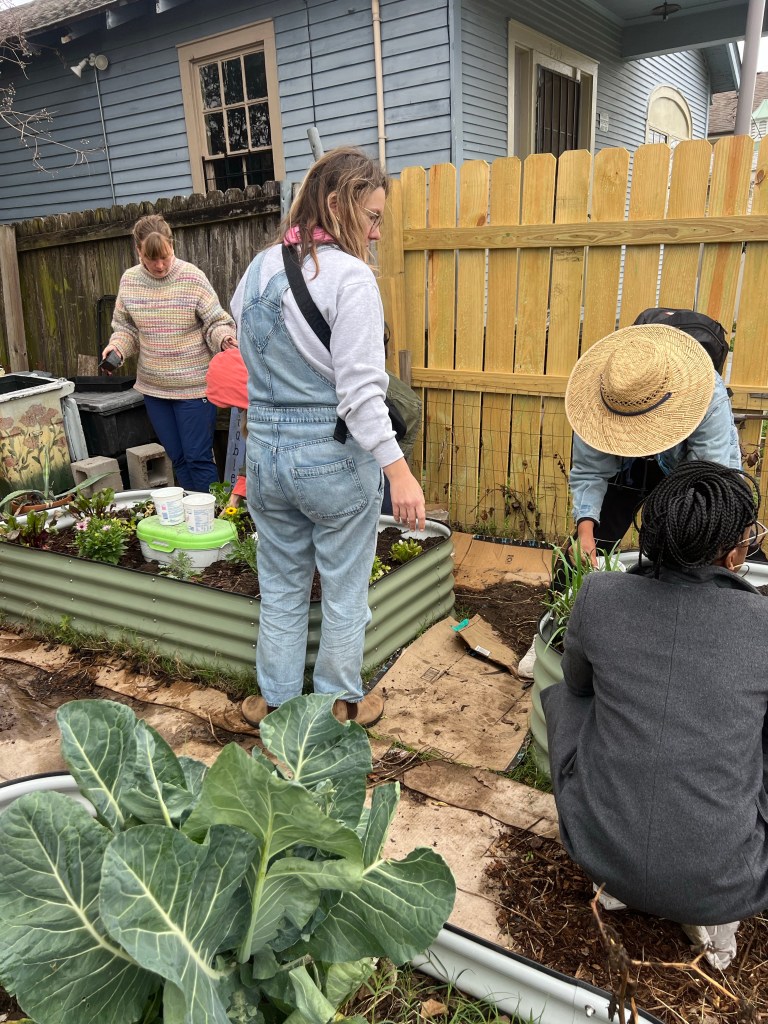 Our intern from Loyola, Meghan Smith, proved to be a tremendous asset to us as she applied what she’s learning to help the artists with correctly planting food and companion plants for our garden. In preparation of the cohort’s arrival, she assisted in safely separating purchased plants to increase production yield. Following the visit, she planted some seedling she started and we can’t wait for her watch them grow!