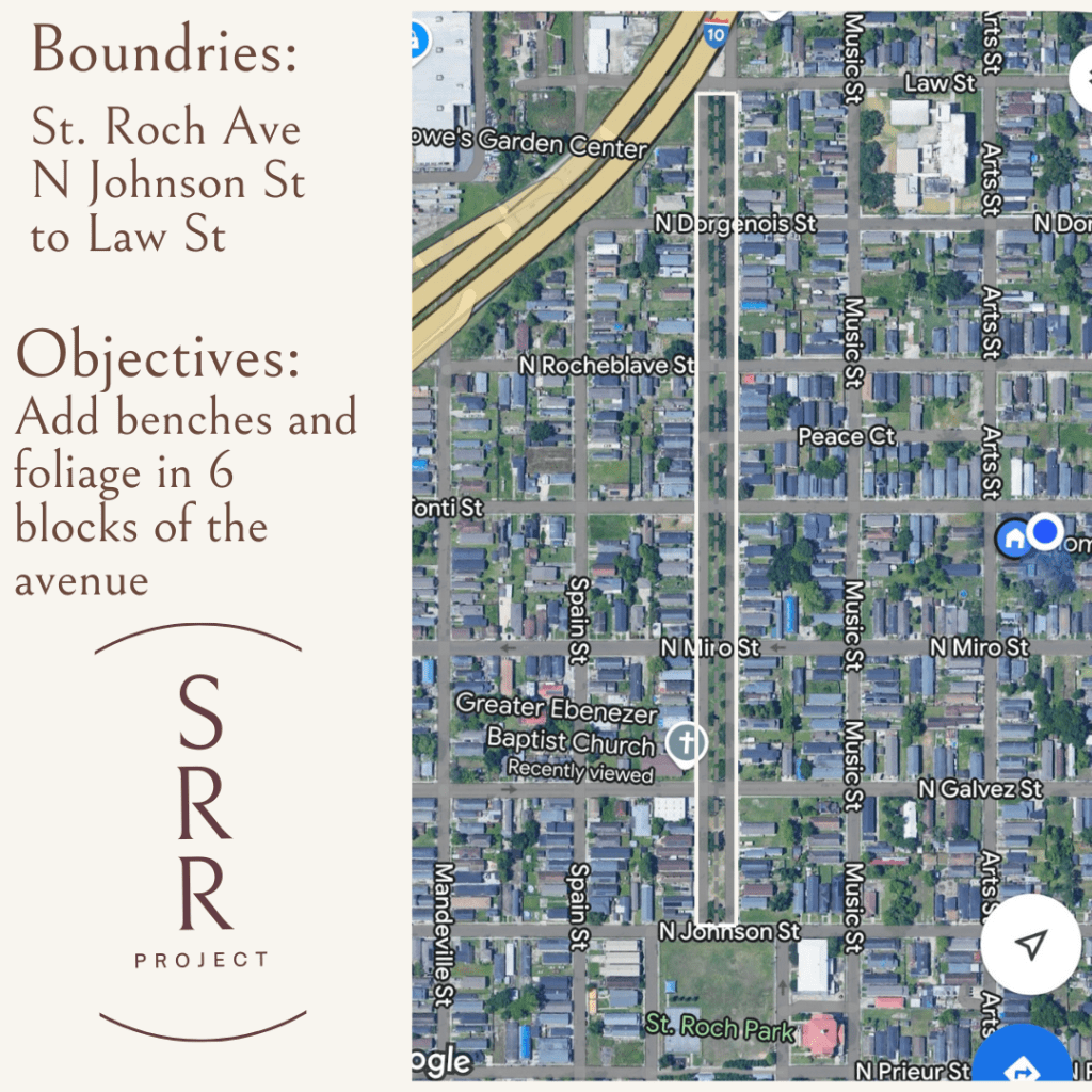 In 2023 the organization initiated the St. Roch Avenue Revitalization Project with the addition of a new neighborhood sign, seating area, and native plant garden installed in 2024. In aims to continue this beautification project, we intend to add seating and planting between the park and the canal, from North Johnson Street to Law Street.