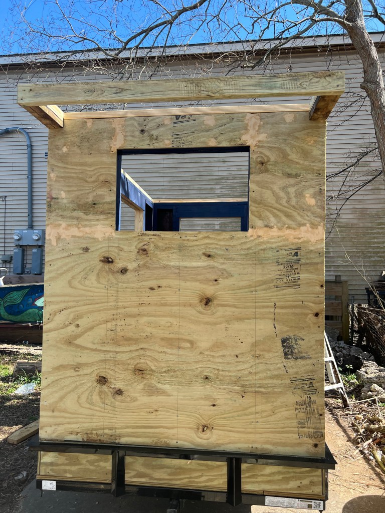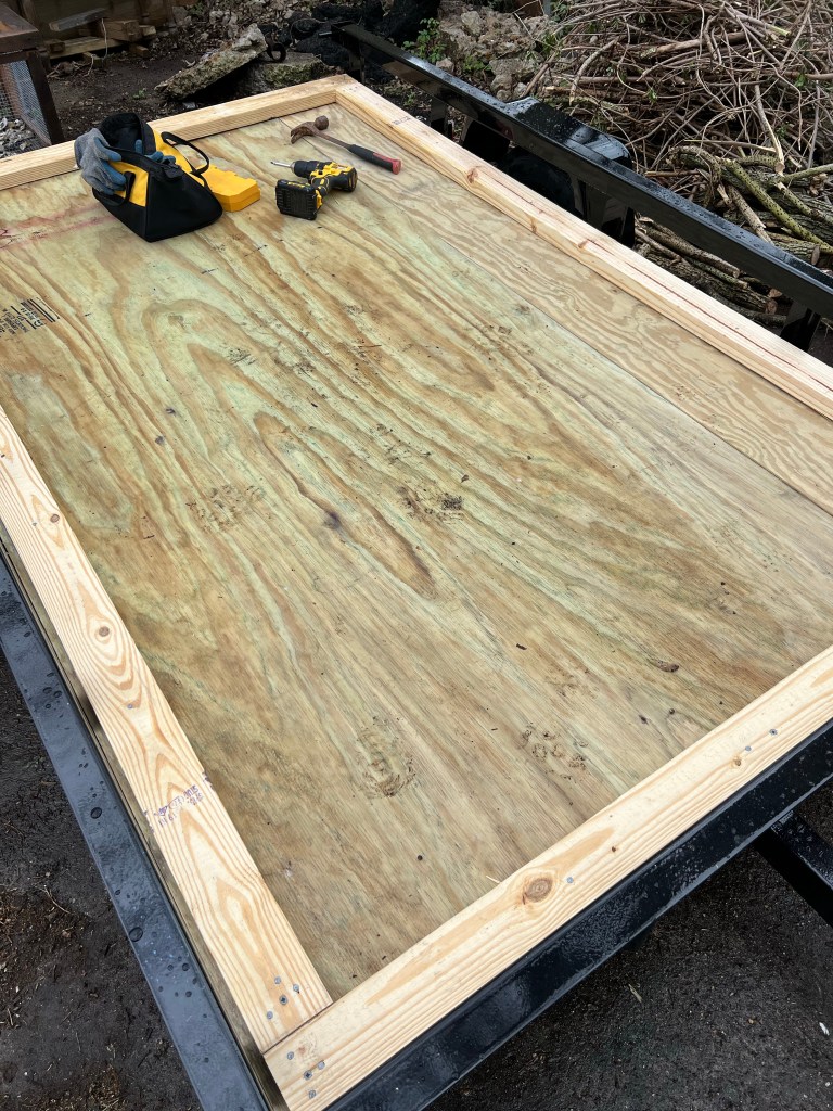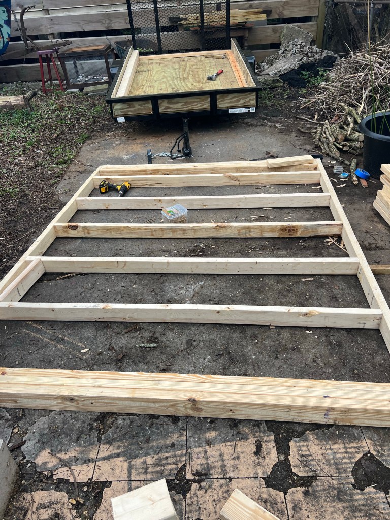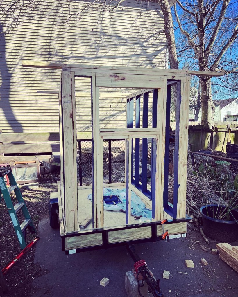 We have started the build one week ahead of the projected schedule and we’re thrilled to share the humble beginnings of our project! We’ve purchased the carry-on trailer and building materials for the construction of the building. And, we have secured the foundation for the build to the trailer! Here’s a glimpse of this Sunday’s progress!