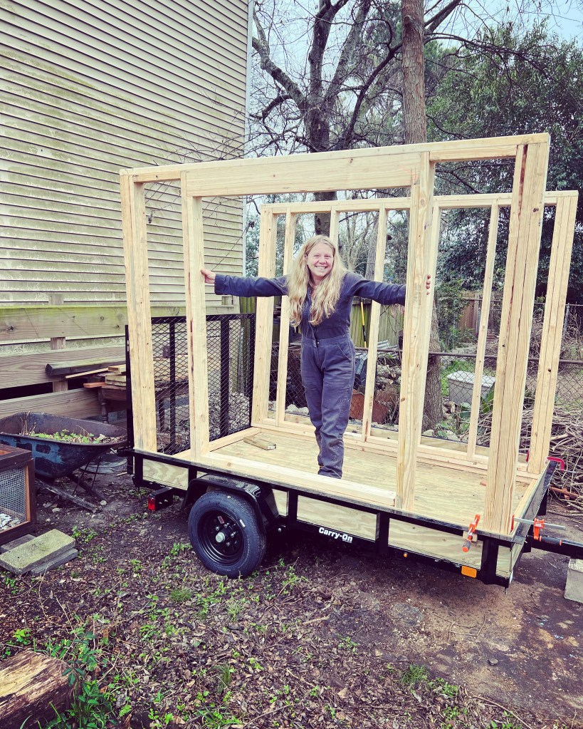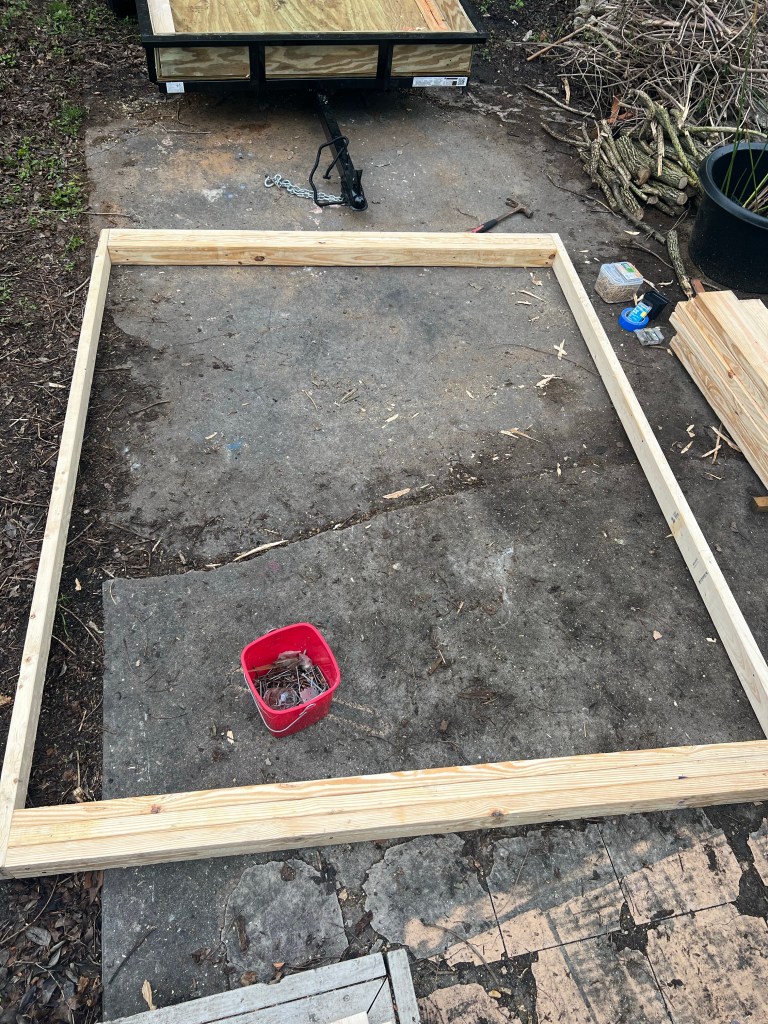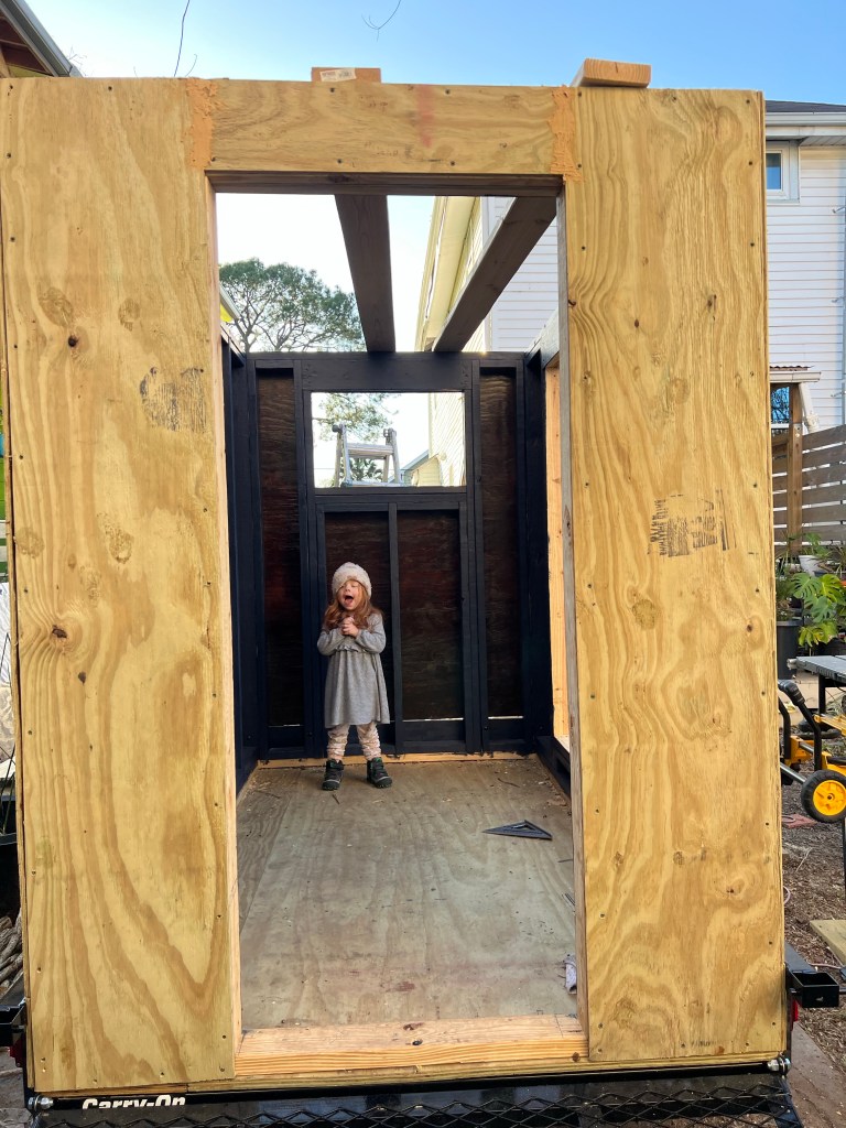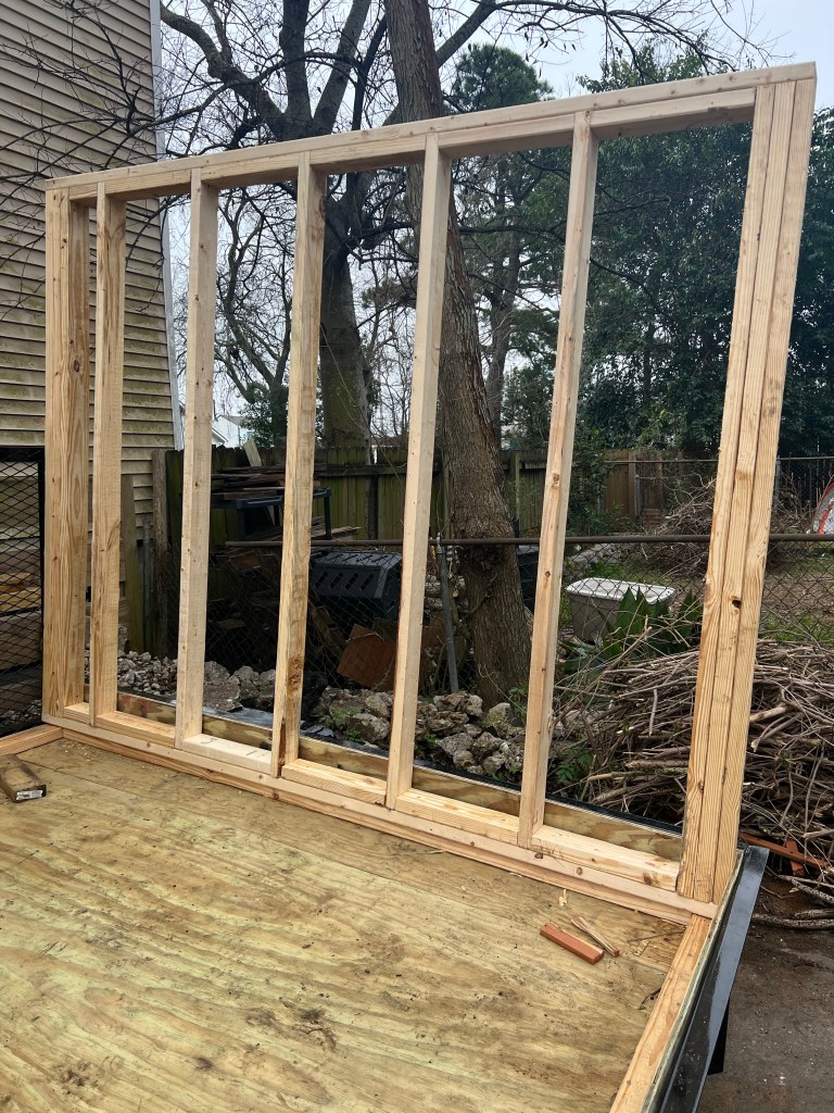 We have started the build one week ahead of the projected schedule and we’re thrilled to share the humble beginnings of our project! We’ve purchased the carry-on trailer and building materials for the construction of the building. And, we have secured the foundation for the build to the trailer! Here’s a glimpse of this Sunday’s progress!