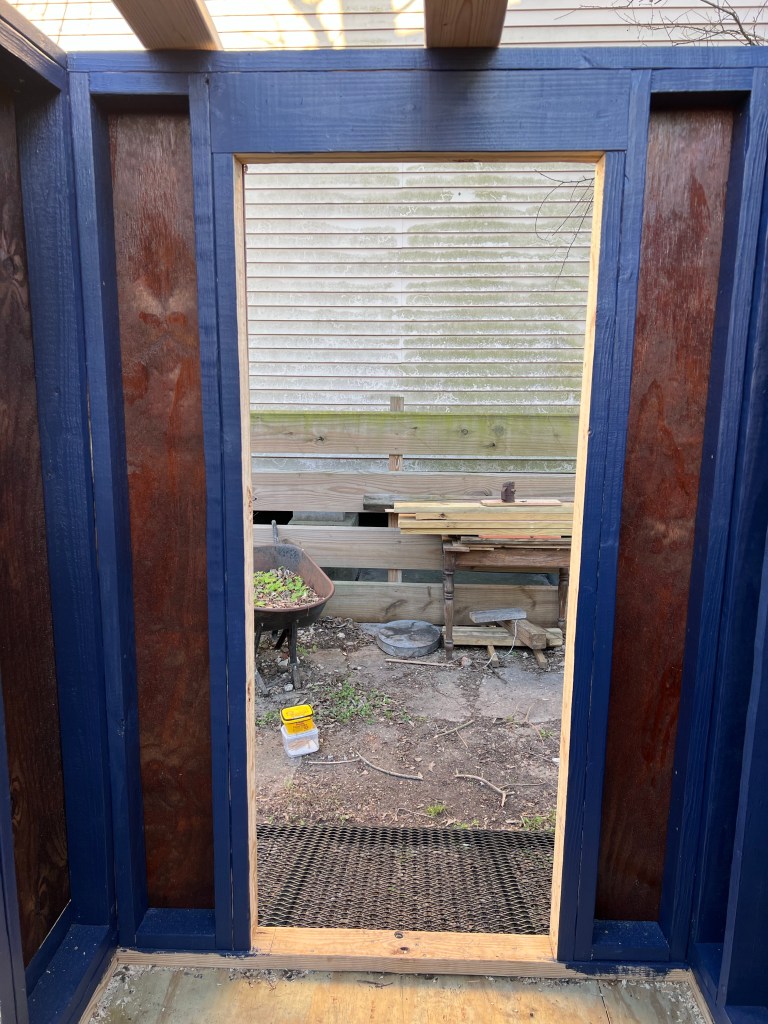 And after much consideration (seriously, an agonizing amount of time) the configuration of the large door is realized. An unorthodox solution of making the door a double door met all our needs. One door will swing up to act as an awning and the other door will swing out.